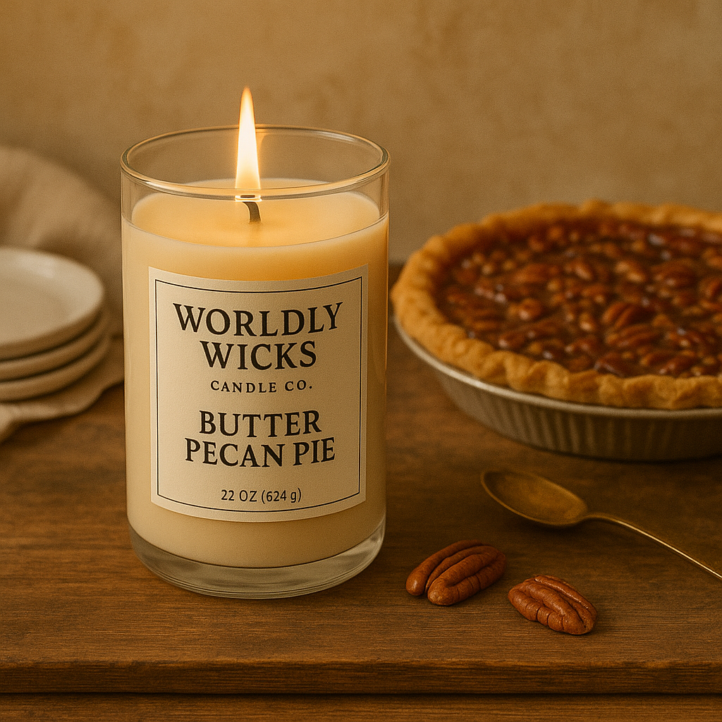 One exquisite note, perfectly captured: Butter Pecan Pie Fragrance Oil in our clean-burning coconut–soy wax.